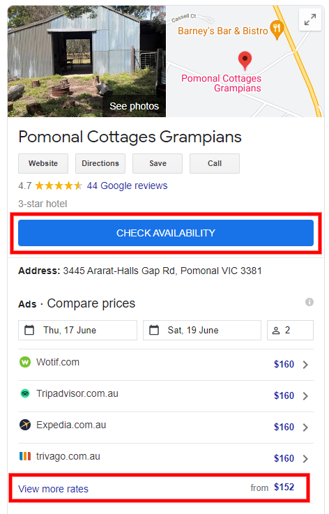 Step 2: Click on "Check Availability" or "View more rates" in your Google Business Listing.